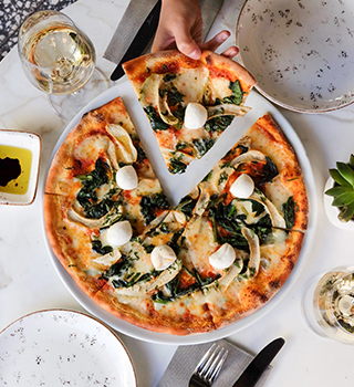 A simple yet flavorful Italian favorite, with tomato sauce, fresh mozzarella, tomatoes, basil, and olive oil.